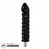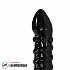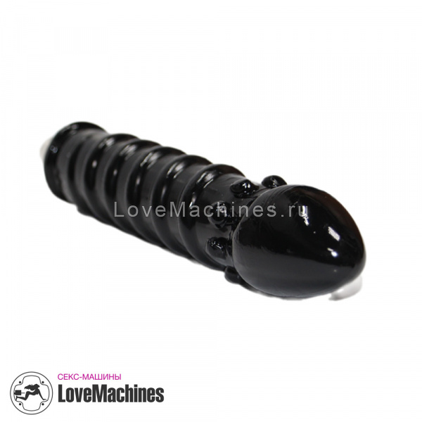 Фаллоимитатор черного цвета с рельефом в виде спирали, крупной головки и кольцом из шаров, которое находится на небольшом расстоянии после головки.
